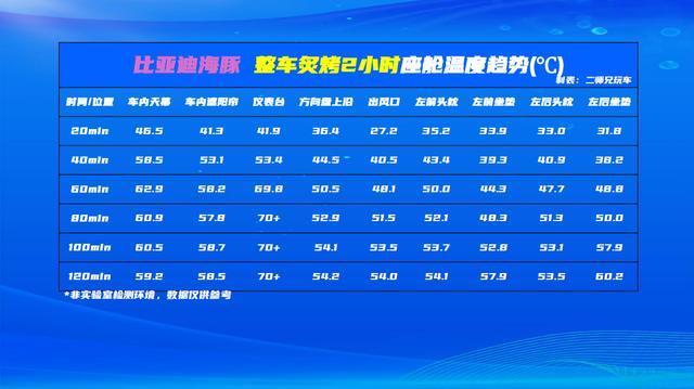 至于比亚迪海豚,它的升温速度其实非常快,只用60分钟它的仪表台温度就能接近70°。此时用手去触摸仪表台,它就已经能让人觉得很烫手了。