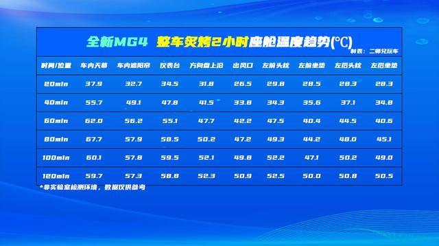 根据数据来看,全新MG4的升温速度其实很慢,在暴晒的前六十分钟,它的车内升温速度要显著低于SU7和海豚。