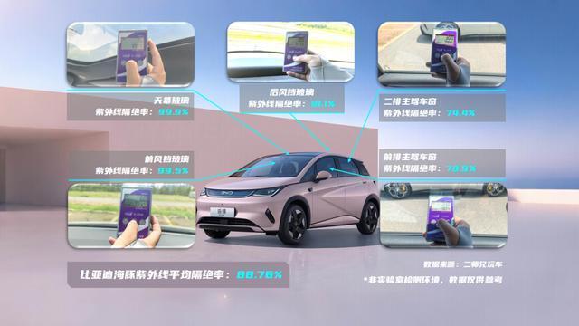 这样的差异,同样是技术路线差异所带来的。小米SU7和全新MG7的前挡和天幕玻璃均采用了镀银技术,细小的金属颗粒能够让红外光被反射回去;而在侧窗位置,拥有UV-IR涂层防晒玻璃,也能有效减少红外光波的入侵,相较于没有涂层的比亚迪海豚,防晒效果确实要好一些。