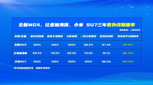 对此,很多车企都在宣传自家的汽车玻璃,具有99%的隔热能力。这是真的吗?今天,我们就用检测来戳破营销滤镜。当全新MG4、小米SU7和比亚迪海豚在烈日下暴晒时,专业汽车自媒体二师兄玩车就用紫外线、红外线检测仪等等设备给我们带来了真实的数据。